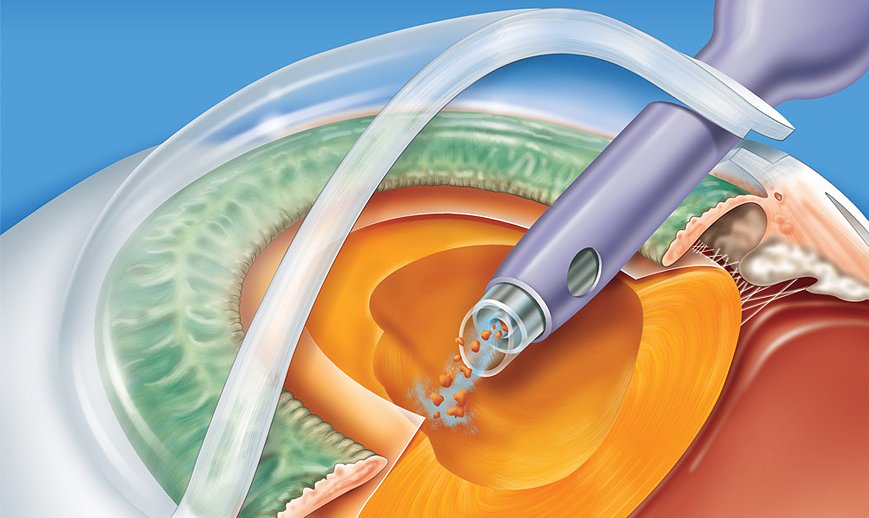 A cirurgia é feita através de uma microincisão na córnea e subsequente aspiração do cristalino. Após, é implantado uma lente artificial no local. O procedimento dura em média 30 minutos, é indolor e não é necessário pontos, aumentando muito o conforto do cuidados pós operatório.